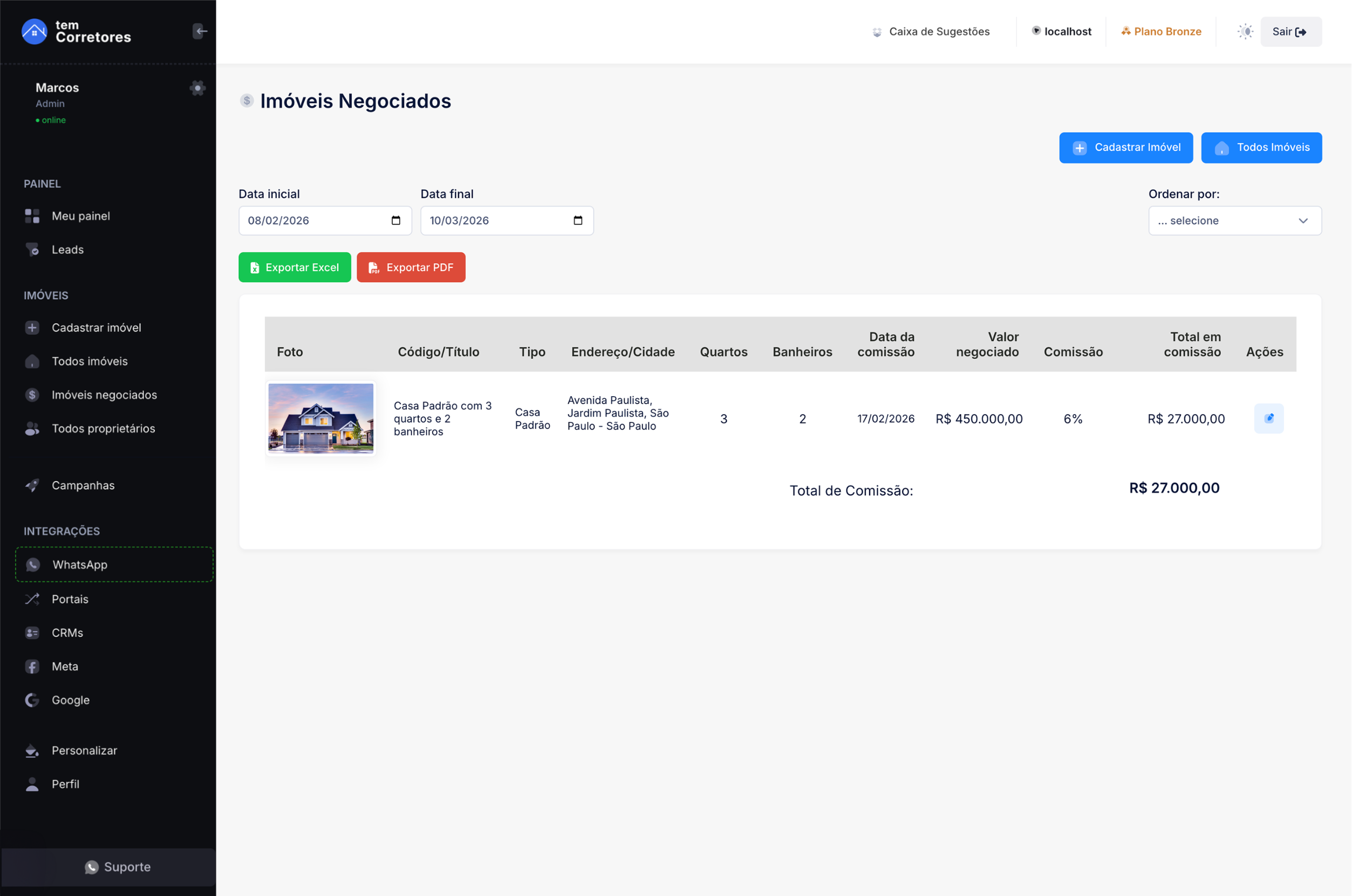 Calcule seus ganhos com a tela de Imóveis Negociados