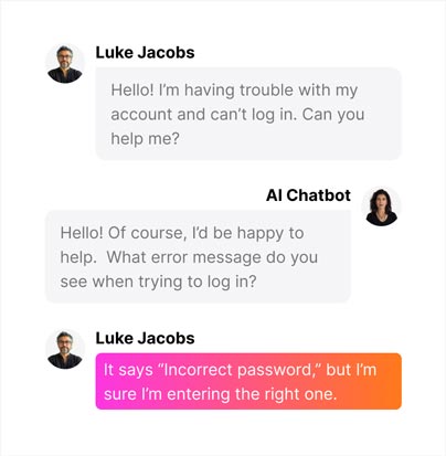 Ofereça suporte por chat ao vivo aos seus clientes. Nosso chatbot faz a transição perfeita para agentes humanos quando necessário.